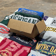 This mix contains American college sweatshirts and university sweatshirts from the 80s-00s in various brands and styles. This mix includes hoodies only, whereas our regular college sweatshirt mix includes a mix of crewneck and hoodies. You can find college sweats with large printed graphics to college sweats with simpler graphics, some college sweats with embroidery, and others with printed graphics. Vintage college sweatshirts seamlessly integrate with contemporary wardrobes. Whether paired with jeans for a casual outing or layered over a collared shirt for a smart-casual look, they offer endless opportunities to express individuality and style.