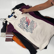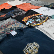 This bundle contains a greater amount of B Grade and distressed pieces than our other mixes. Many vintage resellers use Grade B pieces in this mix to rework Harley Davidson crop tops or bleach tie-dye tees to sell. Others prefer the aesthetic of a distressed biker look.