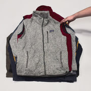 • A mix of fleece, Synchilla and soft knit sweaters. May include a small percentage of vests.