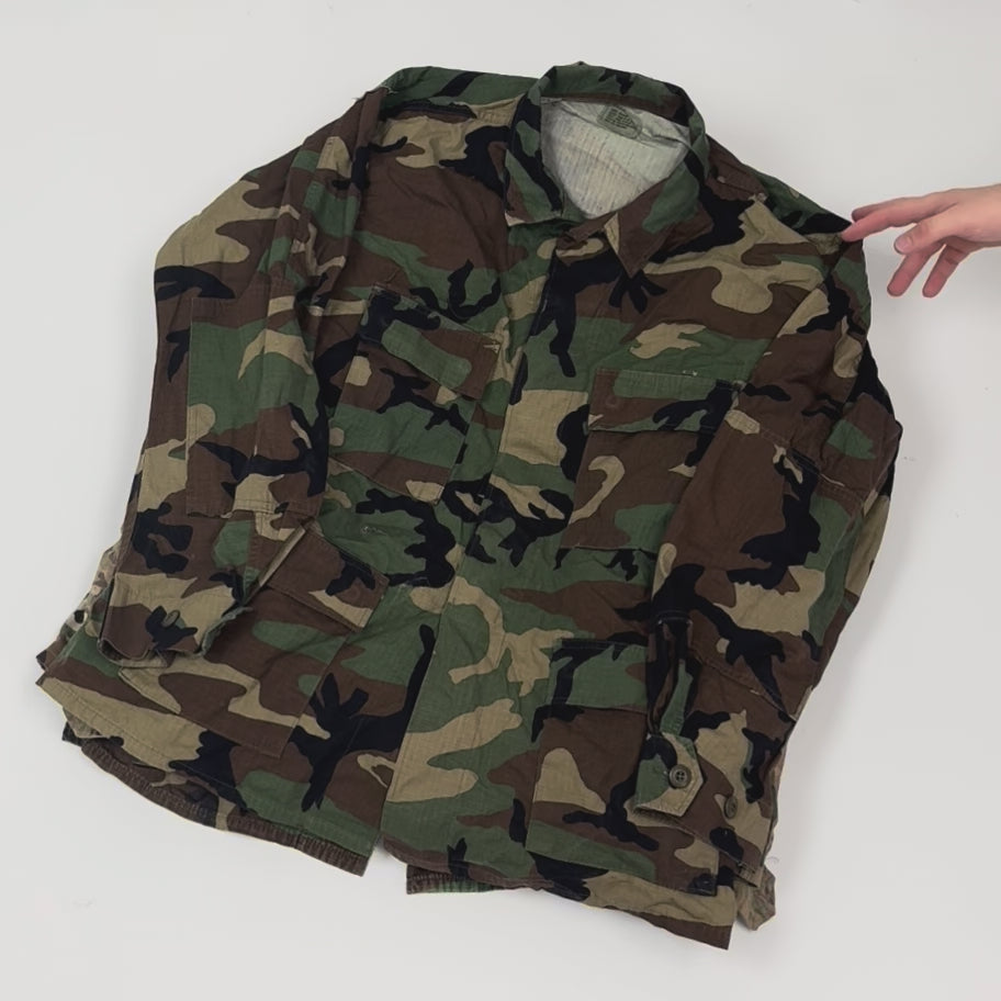 These are classic US Army Camo shirts in all the most common shades of camouflage. Expect a mix of dark green and brown woodland, sand woodland, and green and blue digital.