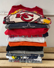 Expect a good mix of vintage and retro sports sweatshirts from the 80s-present day. Our vintage and retro NBA, NFL, MLB, and NHL sweatshirts mystery boxes are among our #1 best sellers. This vintage & retro sports sweatshirt mystery box is popular with all our customers. Our mystery box is perfect for someone who loves thrifting and understands the nature of buying secondhand clothing. You will find a mix of retro and vintage sweatshirts. Expect to find sports crewneck & sports hoodies in this mix. You will find a majority of this mix is men's sports sweatshirts but today are worn unisex, as women love wearing oversize sports sweatshirts & sports hoodies. This mix includes sports crewnecks & sports hoodies from America's most popular sports teams. Find a combination of vintage sports sweats and retro sports sweats, including retro & vintage NBA sweatshirts/hoodies, retro & vintage NFL sweatshirts/hoodies, retro & vintage MLB sweatshirts/hoodies, and retro & vintage NHL sweatshirts/hoodies.