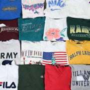 Contains a mix of all categories including Pro Sports, College, Vintage Graphic, Branded, Cartoon, and more. Expect a good mix of everything, most sweats included are crewneck with some hoodies.