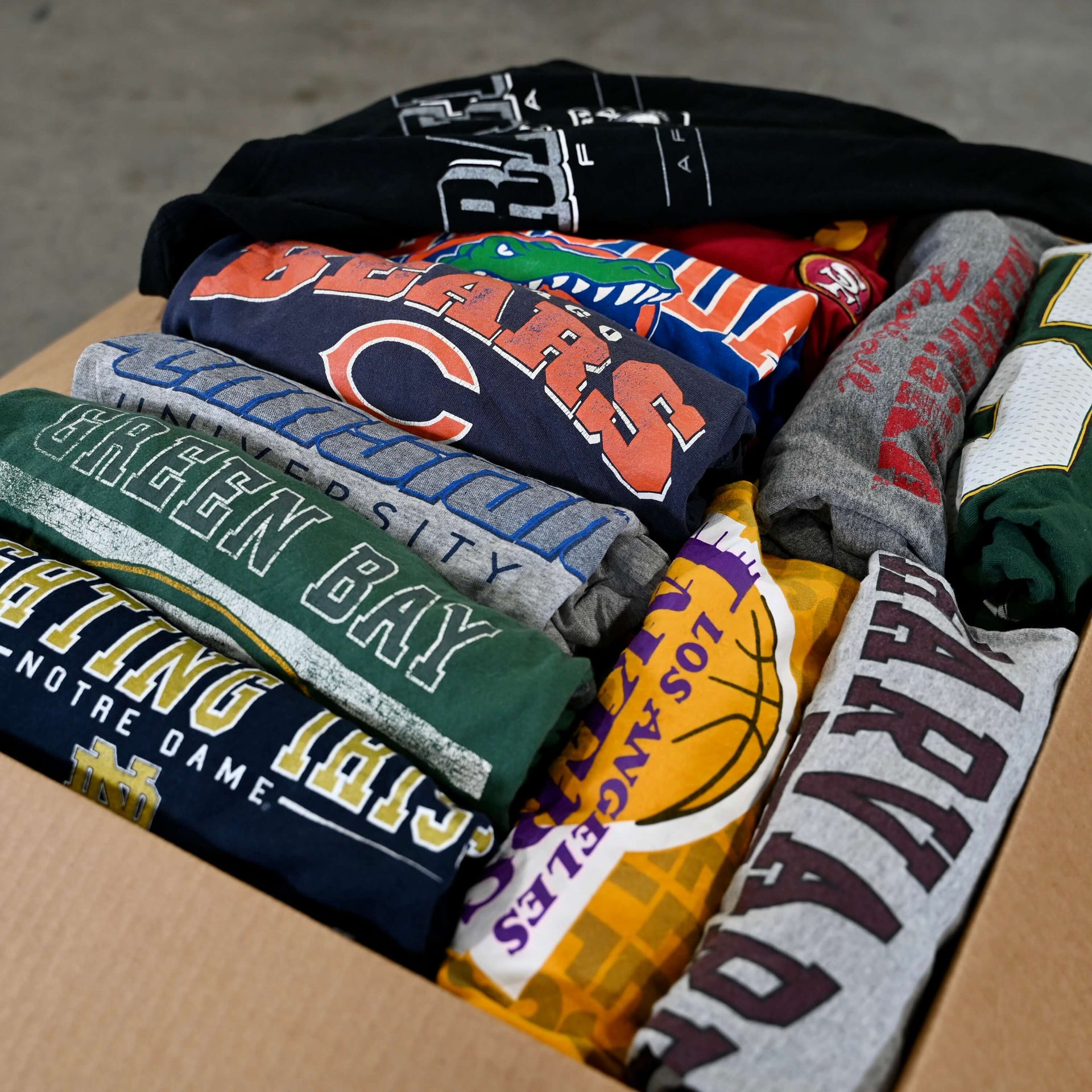 Our LONG SLEEVE T-SHIRTS MIX offers our top-selling branded tees mix and our pro/college sports tees in long sleeve only.