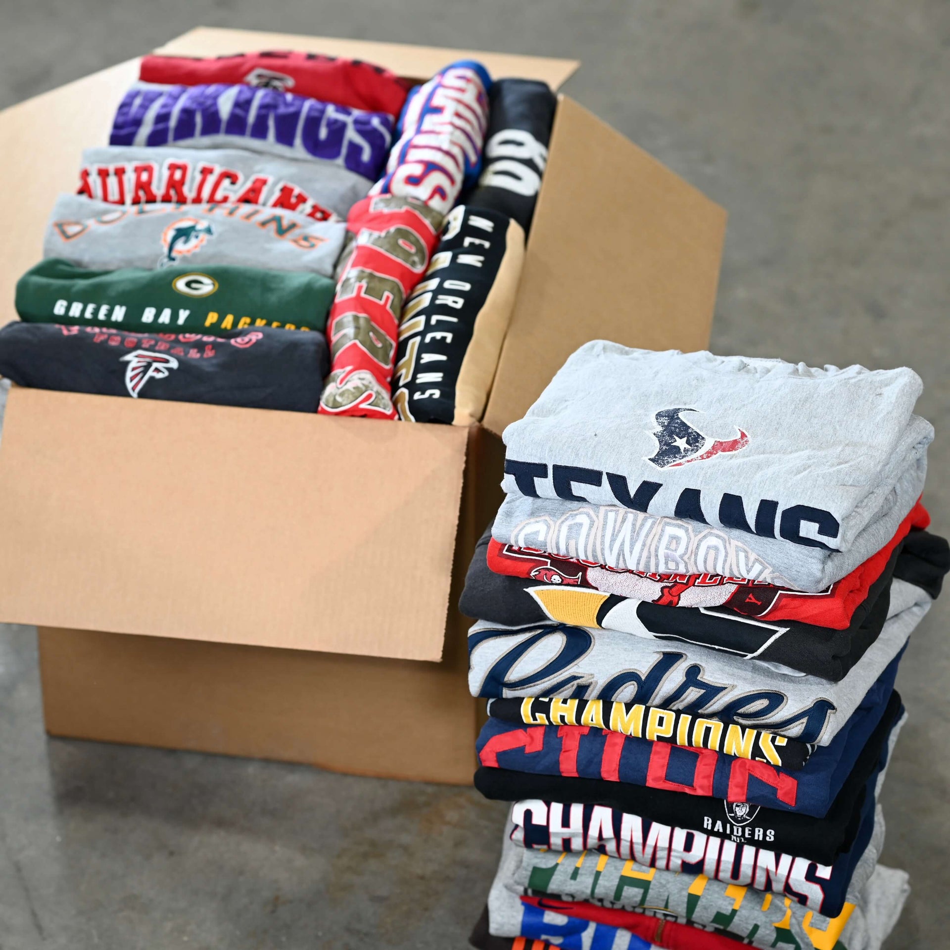 Our PRO SPORTS SWEATSHIRTS AND HOODIES MIX includes a variety of sweatshirts featuring America's most popular pro sports teams.